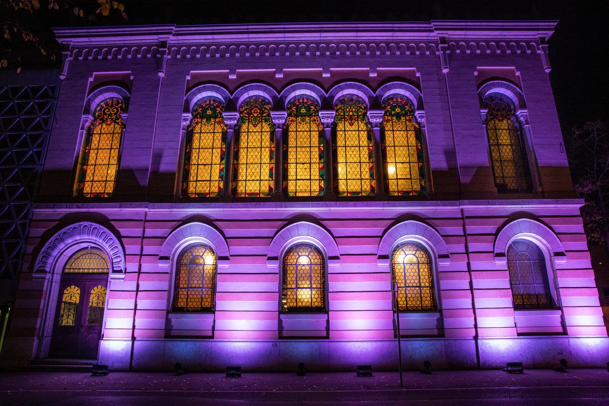 Am 9. November 2018 jährt sich die Reichspogromnacht zum achtzigsten Mal. Am Abend zuvor wurde auch schweizweit den Opfern dieser schrecklichen Ereignisse und darauffolgenden Schoah gedacht. Im Zentrum stand auch die Ermahnung, auch in Zukunft zu erinnern und nicht zu vergessen. Als Zeichen des Gedenkens wurden in Baden, Basel, Bern, Genf, Lausanne und Zürich die Synagogen hell und farbig beleuchtet.