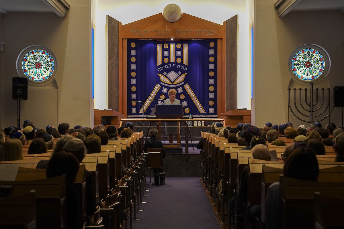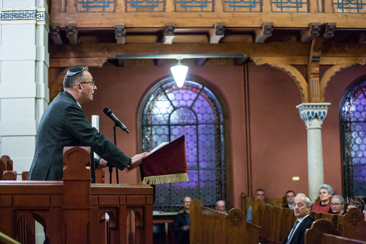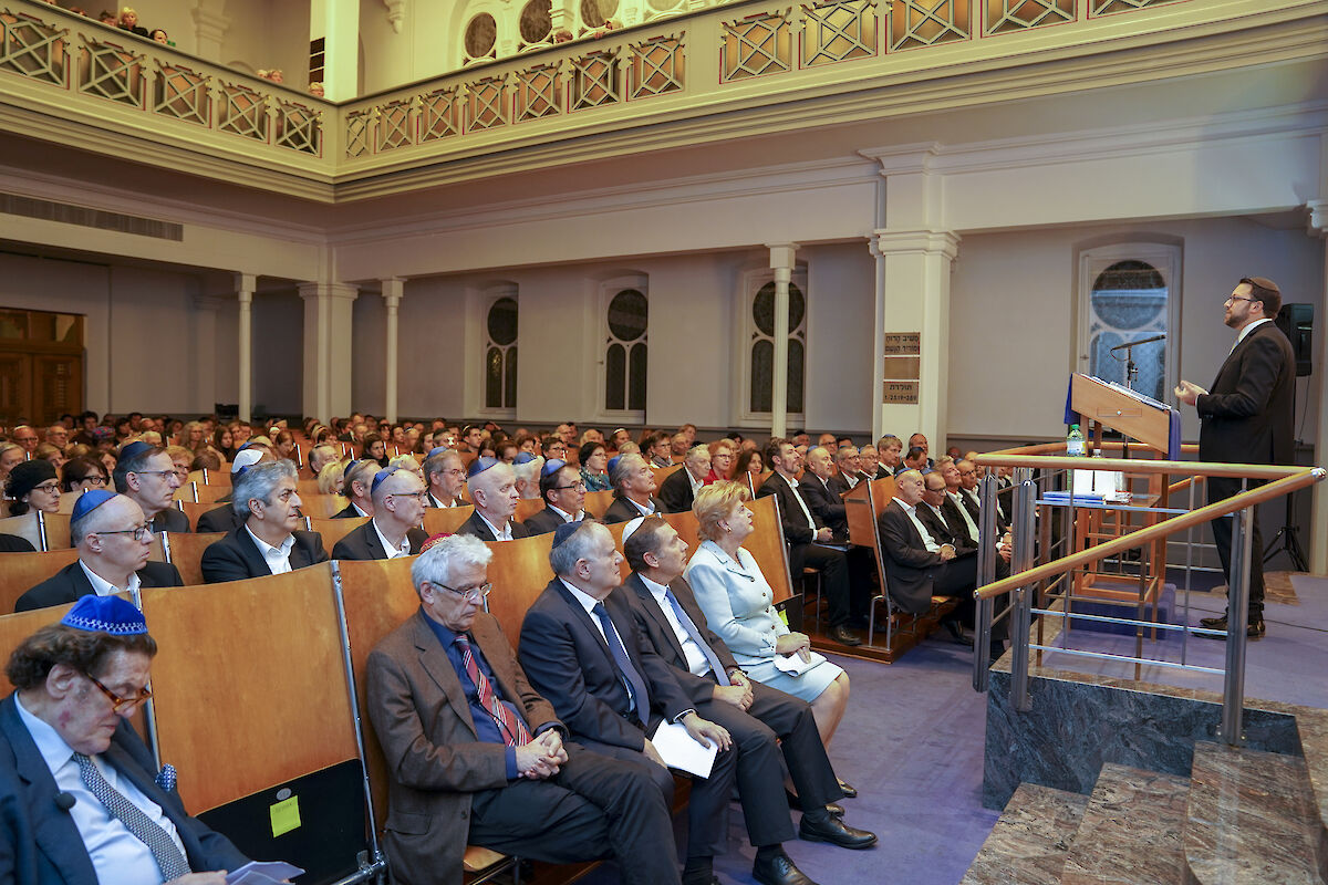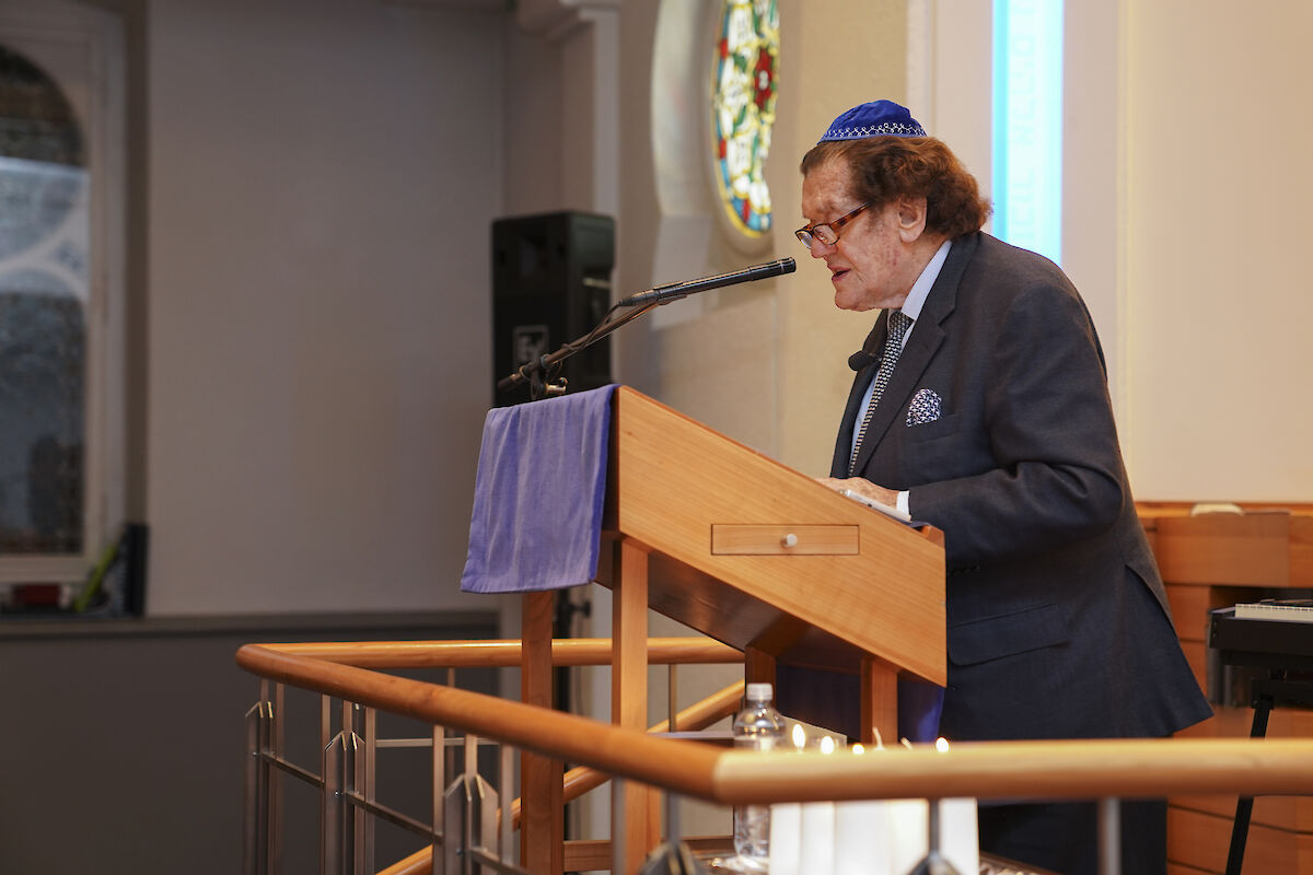 Die über 300 Gäste füllten alle Sitzreihen der Synagoge Löwenstrasse in Zürich. Mit der Rede von ICZ-Präsidentin Shella Kertész wurde der Gedenkabend offiziell eröffnet. Wie ein roter Faden nahmen alle Rednerinnen und Redner den Appell auf, dass die Schrecken und Verbrechen der Vergangenheit nicht vergessen werden dürfen. So meinte SIG-Präsident Herbert Winter: «Das Wissen über die Shoah und über die Schreckensherrschaft der Nazis nimmt vor allem bei den Jungen dramatisch ab. Das muss uns aufrütteln!» Er rief Politik, Gesellschaft aber auch die jüdische Gemeinschaft dazu auf, die schrecklichen Ereignisse der Schoah als Mahnmal zu erhalten und die junge Generation aufzuklären. Man müsse sich insbesondere Gedanken zur Vermittlung der Schoah machen, weil bald keine Zeitzeugen mehr da seien, um ihre persönliche Geschichte zu erzählen. Als Zeitzeuge war Werner Merzbacher anwesend. Er berichtete von seinen Erlebnissen als 10-jähriger in Konstanz und wie er in die Schweiz in Sicherheit gebracht wurde. Dieses Einzelschicksal, das aber von Millionen geteilt wurde, machte deutlich, warum ein Wiedererstarken von Hass getriebenen Ideologien verhindert werden muss. Professor Jacques Picard gab ausserdem zu bedenken, dass es eine offizielle und staatliche Erinnerung und Würdigung der Schweizer Überlebenden und Opfer der nationalsozialistischen Verfolgung nicht gäbe. Eine moralische Anerkennung und ein sichtbares Gedenkzeichen für die Schweizer Opfer seitens des Staates müsse umgesetzt werden. Nach den Reden strömten alle Gäste nach draussen vor die Synagoge, die als Abschluss im Licht der Aussenbeleuchtung erstrahlte.