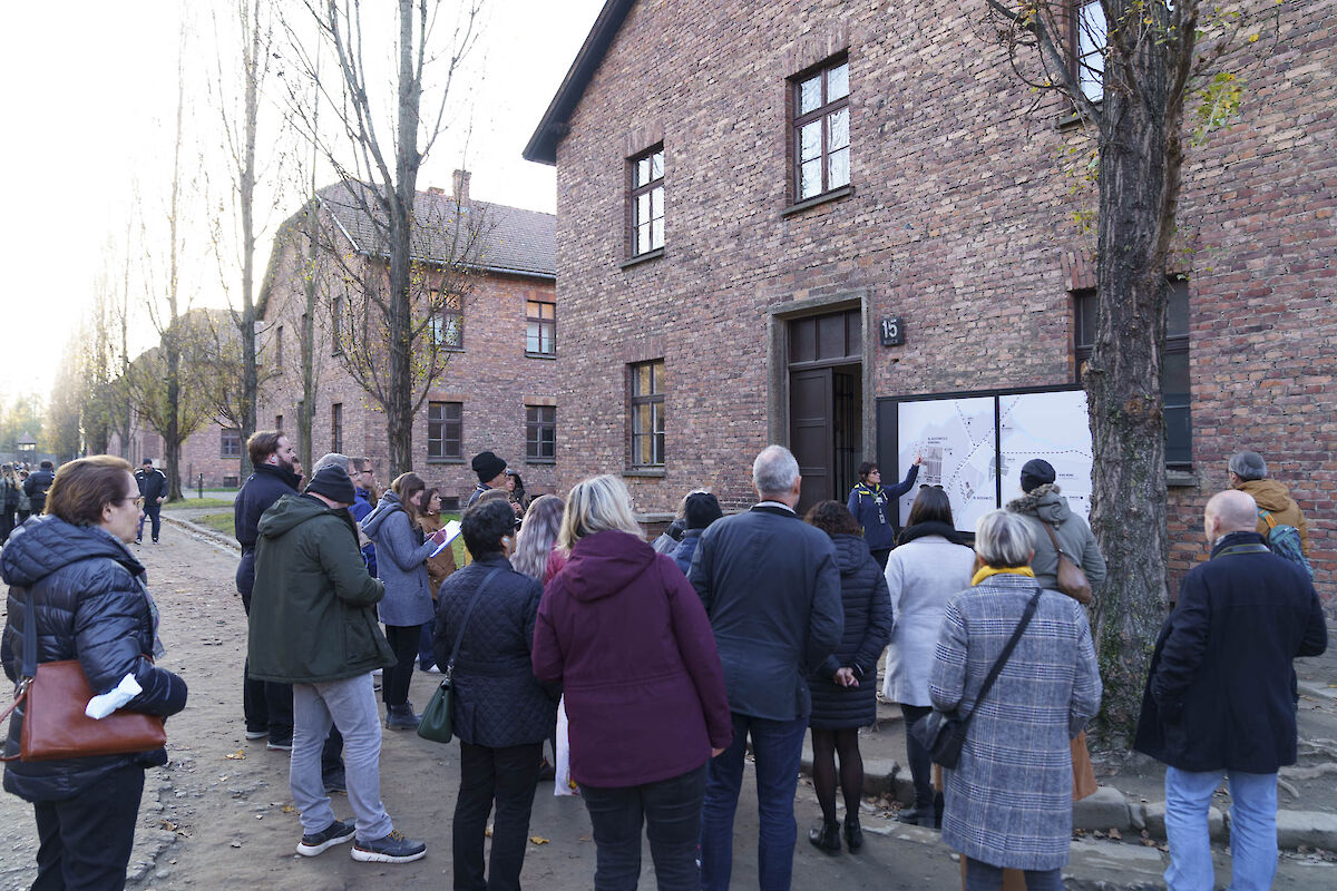 Es liegt nun tatsächlich schon ein paar Jahre zurück, seit ich das letzte Mal Auschwitz besucht habe. Seit wir dieses Programm anbieten, war ich sicher schon ein halbes Dutzend Male im Konzentrationslager Auschwitz-Birkenau. Man könnte den Eindruck haben, dass das ein wenig abstumpft. Es ist aber jedes Mal eine persönliche, psychische und physische Belastung. So ist die Reise aber auch angelegt. Die Teilnehmenden sind müde, da die Reise frühmorgens beginnt. Dann der Flug, das nasskalte Novemberwetter in Polen und schliesslich sind alle den ganzen Tag auf den Beinen. Gleichzeitig erlebt man emotional sehr beklemmende Situationen. Das gilt auch für mich, jedes Mal.