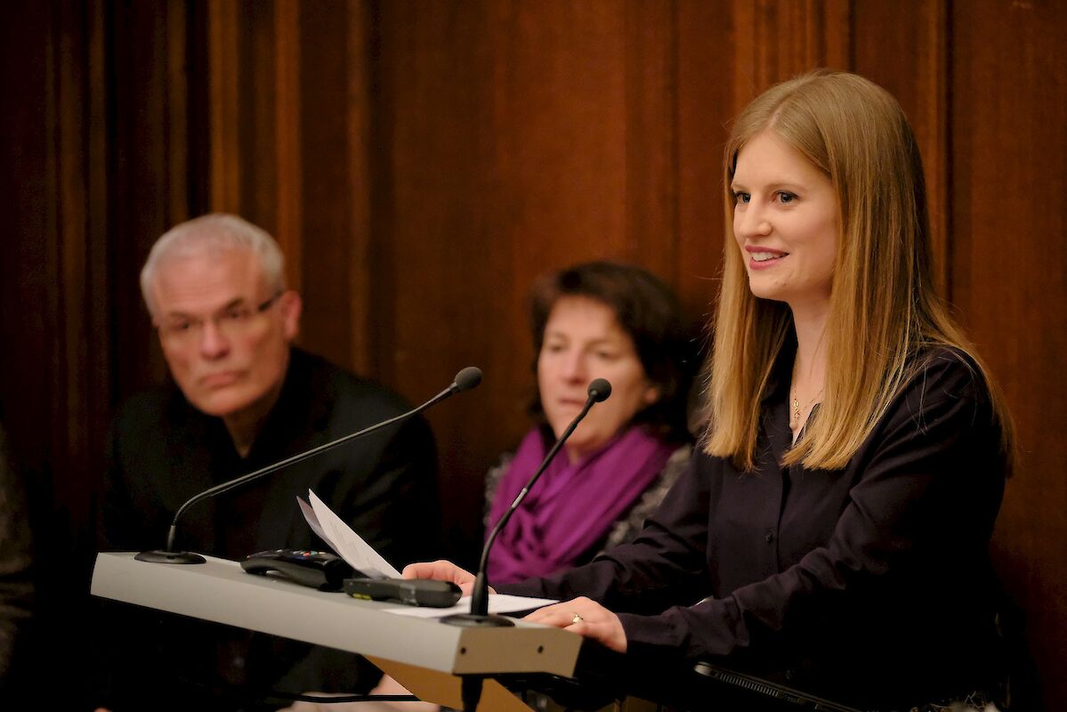 Francine Brunschwig, Kulturverantwortliche in der SIG Geschäftsleitung, betonte in ihrer Ansprache, dass es Lea Bloch in der Biografie gelungen sei, die Leser die Widrigkeiten, Leiden und bürokratischen Hürden, welche die Flüchtlinge überwinden mussten, hautnah miterleben zu lassen. Ein weiteres Verdienst des Buches sei es, dass es aufzeigt, wie die persönliche Haltung von Menschen, ihr Mitgefühl genauso wie ihre mangelnde Empathie, ein Leben positiv oder negativ beeinflussen können. Francine Brunschwig erinnerte auch daran, dass Kurt Biglers Biografie sich einschreibe in die Tragödie der Schoah, welcher während des Jahres 2017 gedacht wurde, als die Schweiz die internationale Organisation IHRA (The International Holocaust Remembrance Alliance) präsidierte. Sie zeigte sich erfreut, dass die Schriftenreihe des SIG mit dem vorliegenden Buch einen Beitrag zu dieser wichtigen Erinnerungsarbeit leisten könne.
