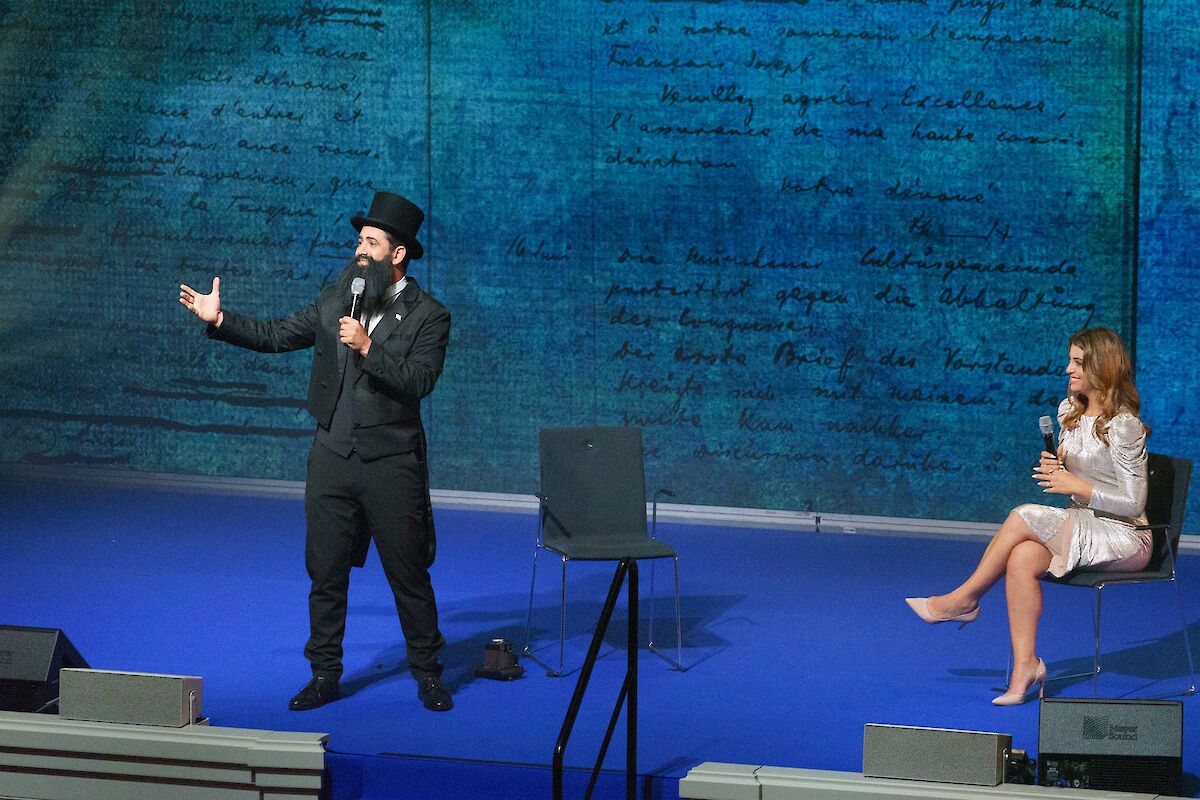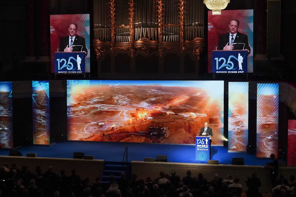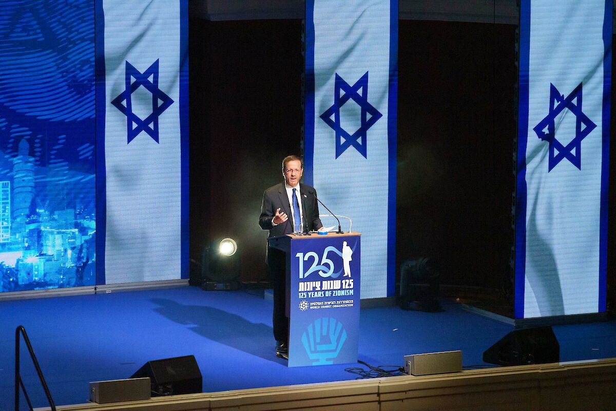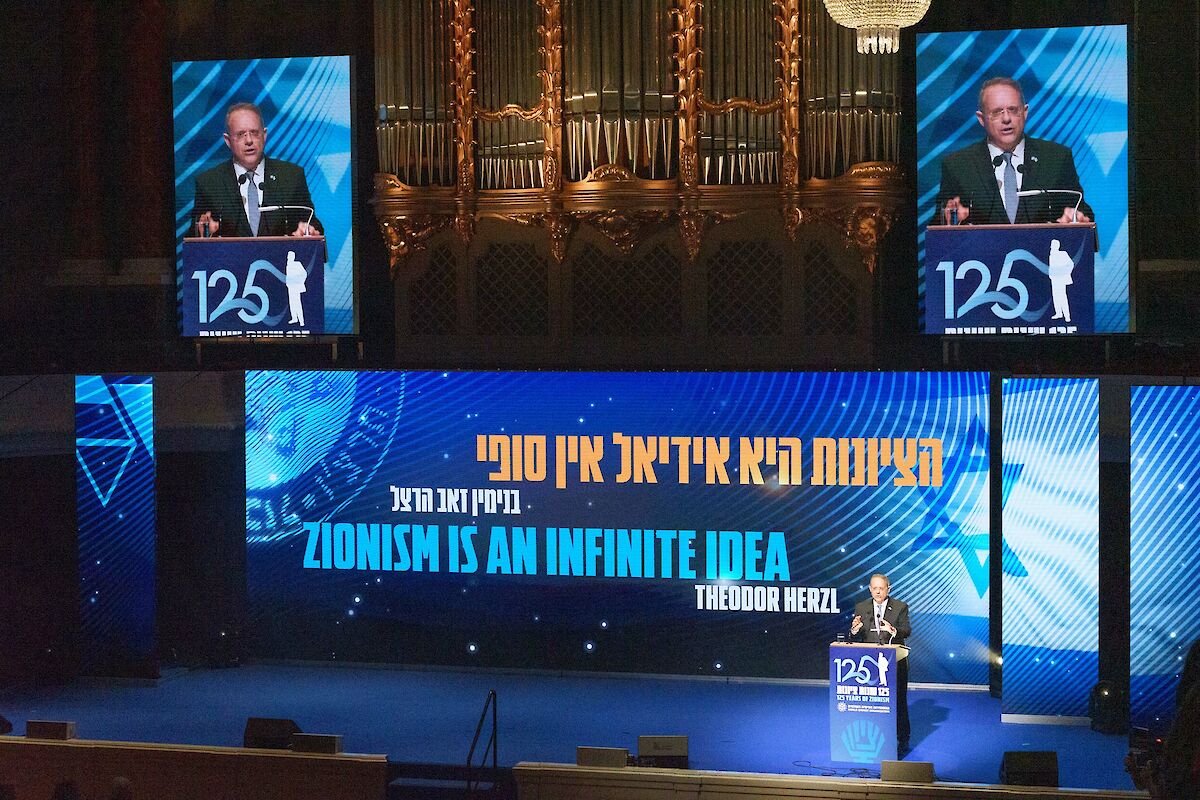 Das Abendprogramm zeichnete vor allem die Entwicklung und Bedeutung der zionistischen Bewegung in den letzten 125 Jahren nach. Geschichte greifbar machte ausserdem ein Panel mit Urenkelinnen und Urenkel damaliger Teilnehmer. Eine weitere Überraschung war der Auftritt der Figur Theodor Herzl auf dem Balkon, der die Anwesenden begrüsste. Zentraler Höhepunkt war die Rede des israelischen Staatspräsidenten Isaac Herzog. Er betonte in seiner Rede: