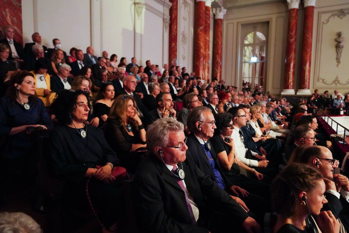 Im voll besetzten Musiksaal fanden sich Gäste aus Israel, der Schweiz und vielen anderen Ländern ein – darunter zahlreiche Persönlichkeiten aus der jüdischen Gemeinschaft der Schweiz und weltweit, aus Politik, Wirtschaft und Zivilgesellschaft. Viele von Ihnen hatten bereits an den beiden von der WZO organisierten Konferenzen «Herzl Leadership Conference» und «Herzl Social Impact Entrepreneurship Summit» im Congress Center der Messe Basel teilgenommen. Ehrengäste des Abends waren der israelische Staatspräsident Isaac Herzog, Bundesrat Guy Parmelin und der Basler Regierungspräsident Beat Jans.