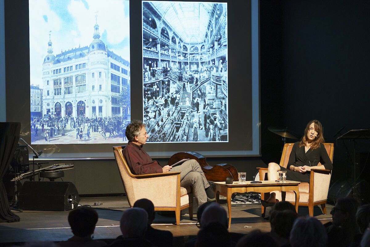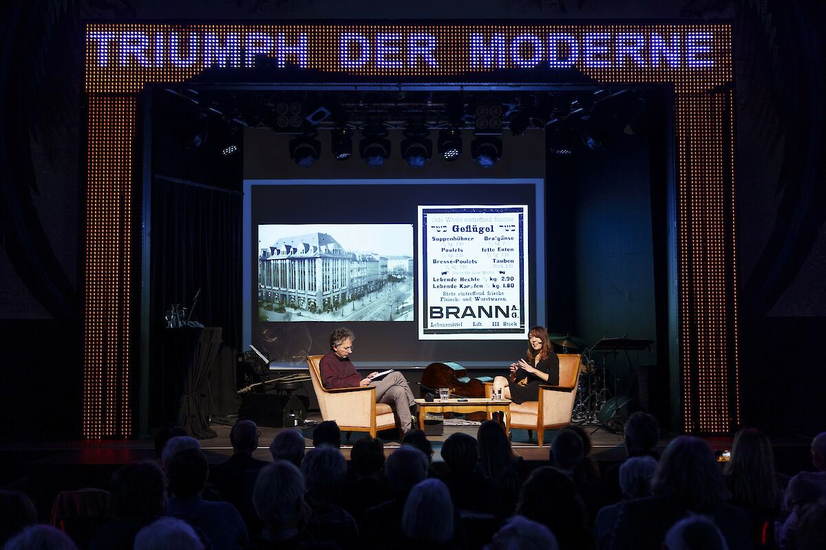Die Vernissage am 23. November 2021 im Plaza Klub in Zürich hat zahlreiche interessiert Leserinnen und Leser angezogen. SIG-Präsident Ralph Lewin begrüsste die Anwesenden und würdigte das Werk: «Die Publikation beleuchtet verschiedene Aspekte der Schweizer Geschichte. Sie zeichnet Biografien der Gründerfamilien nach und ordnet sie ein. All dies macht «Triumph der Moderne» zu einem neuen Standardwerk, für eine interessierte breite Leserschaft ebenso wie für ein Fachpublikum.» Im Gespräch diskutierte die Autorin Angela Bhend mit Daniel Teichmann über die facettenreiche Geschichte der Warenhäuser. Bhend meinte überzeugt: «Das Warenhaus hat die Gesellschaft nachhaltig verändert. Es prägte den Konsum, die Entwicklung der Stadt, die Emanzipation der Frau und mit dem Warenhausdiebstahl ging es sogar in die Kriminalgeschichte ein.»