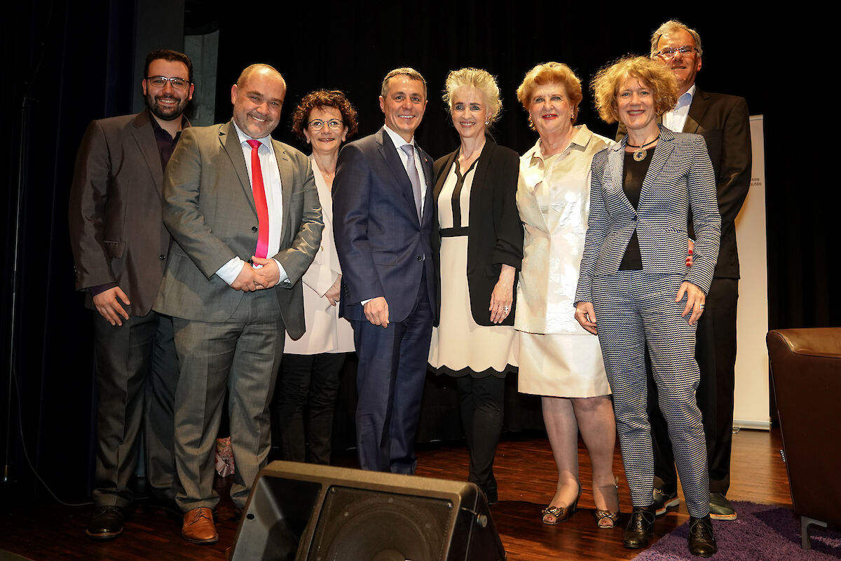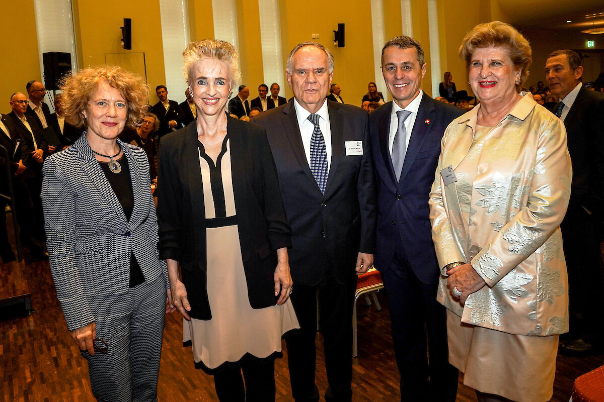 Höhepunkt des Tages war der Besuch von Bundesrat und Aussenminister Ignazio Cassis. Der Bundesrat und Aussenminister liess in seiner Rede 70 Jahre diplomatische Beziehungen zwischen der Schweiz und Israel Revue passieren. In den letzten Jahren seien diese Beziehungen vielfältiger und intensiver geworden. Bundesrat Cassis äusserte sich ausserdem zur der sich in Erarbeitung befindenden neuen aussenpolitischen Strategie im «Nahen und Mittleren Osten». Er bekräftigte das vitale Interesse der Schweiz an einer stabilen Situation in dieser Region. Als Ideen für das zukünftige Vorgehen nannte er das eigene Einbringen in politische Gremien im Rahmen der guten Dienste, den Ausbau wirtschaftlicher Beziehungen oder auch das Engagement bei der Reform der UNO-Agentur UNRWA. Ausserdem solle die Zusammenarbeit mit NGOs in der Region wirksamer, die Kräfte gebündelt und keine Tätigkeiten von NGOs, die zu Hass und Gewalt aufrufen, finanziert werden.