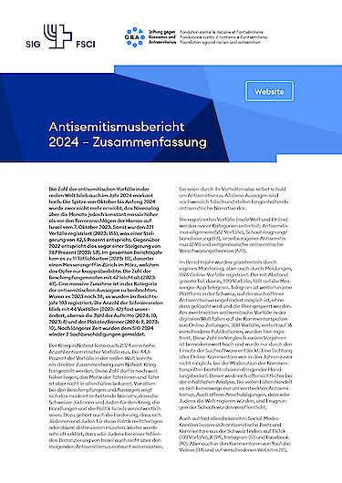 Antisemitismusbericht 2024 – Der Antisemitismus in der Schweiz verfestigt sich auf einem beispiellos hohen Niveau
