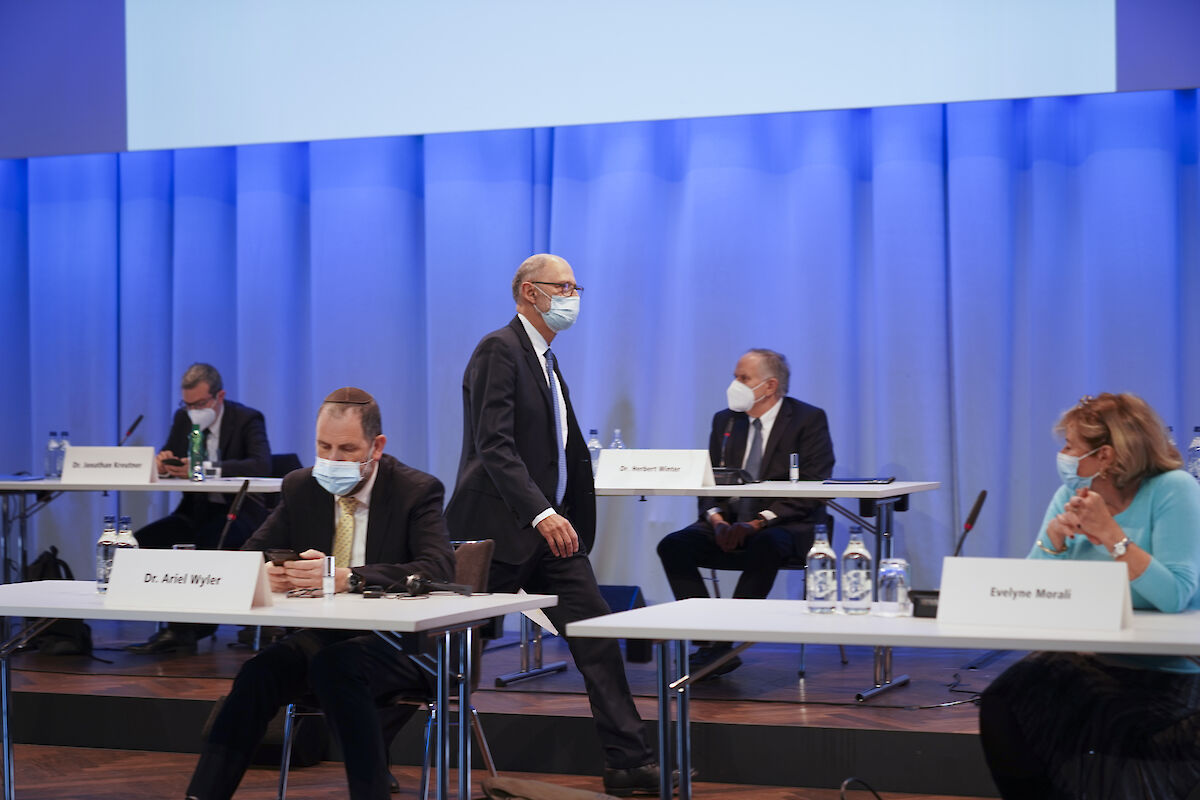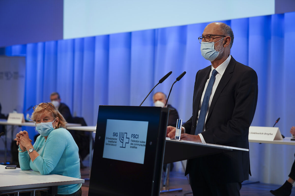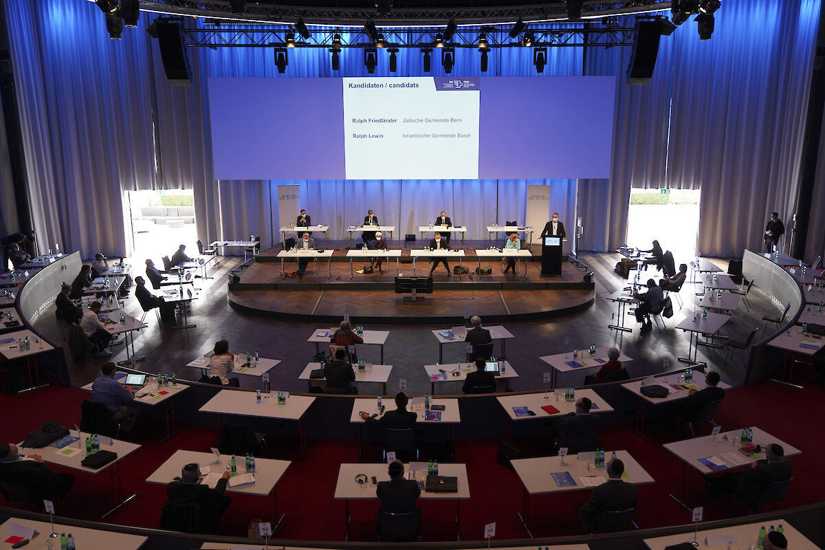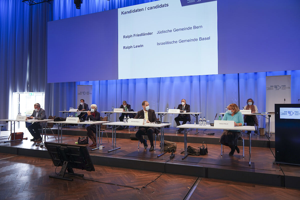 Die 115. Delegiertenversammlung des SIG wartete mit mehreren Premieren. Mit grosser Spannung im Vorfeld wurde die Präsidiumswahl erwartet. Zum ersten Mal seit der Gründung des SIG 1904 stellten sich mit Ralph Lewin und Ralph Friedländer zwei Kandidaten zur Wahl für das SIG-Präsidium. Als zweites Novum wurde die Durchführung der DV auch stark durch eine Gesundheitskrise beeinflusst. Wegen Corona musste die Versammlung vom Mai auf Oktober verschoben werden. Um den Gesamterneuerungswahlen trotz der Coronakrise einen würdigen Rahmen zu bieten, wurde nun eine physische DV im Kursaal in Bern mit Schutzkonzept durchgeführt. Kurzfristig wurde das Programm der DV in einmaliger Weise zusätzlich stark zusammengekürzt, um die Sicherheit der Anwesenden in der aktuellen Coronalage nochmals zu erhöhen. Wie bei so vielen Veranstaltungen dieses Jahr wurde sie entsprechend von Schutzmasken, weiteren Hygienemassnahmen und von Einzeltischen für die Delegierten geprägt.