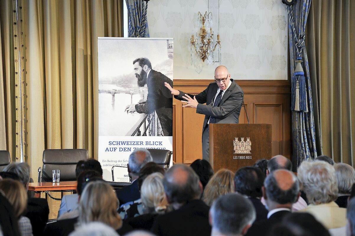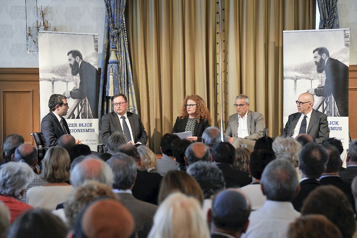 En 1897, Theodor Herzl, visionnaire et précurseur de l’État juif, appelait à participer à Bâle au premier Congrès sioniste. Pour marquer cet anniversaire, la FSCI a organisé la semaine dernière, à l’hôtel Trois Rois, un événement intitulé « Regard suisse sur le sionisme ». Réunies en un panel de spécialistes et un autre, formé de journalistes, des personnalités en vue ont discuté à cette occasion de la signification que le sionisme revêt pour les juifs suisses, la ville de Bâle ainsi que l’État d’Israël. L’intérêt suscité par cette manifestation a été tel que la salle principale et les deux salles d’appoint ont fait le plein. Environ 400 personnes étaient présentes, dont un bon nombre a suivi les débats en livestream.