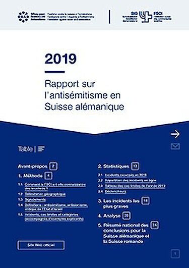 La Fédération suisse des communautés israélites FSCI et la Fondation contre le racisme et l’antisémitisme GRA publient aujourd’hui leur Rapport sur l’antisémitisme 2019 en Suisse alémanique. Comme les années précédentes, le nombre d’incidents antisémites physiques et verbaux est resté relativement stable. Le niveau élevé qu’atteignent les théories du complot antisémites relevées en ligne, est particulièrement préoccupant, y compris en Suisse romande. Pour la première fois cette année, les résultats des différents rapports provenant de la Suisse alémanique et de la Suisse romande ont été réunis en une synthèse commune réalisée conjointement avec la Coordination Intercommunautaire Contre l'Antisémitisme et la Diffamation CICAD.