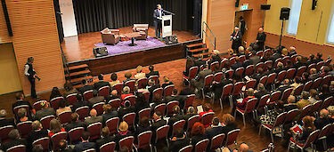 Höhepunkt des Tages war der Besuch von Bundesrat und Aussenminister Ignazio Cassis. Der Bundesrat und Aussenminister liess in seiner Rede 70 Jahre diplomatische Beziehungen zwischen der Schweiz und Israel Revue passieren. In den letzten Jahren seien diese Beziehungen vielfältiger und intensiver geworden. Bundesrat Cassis äusserte sich ausserdem zur der sich in Erarbeitung befindenden neuen aussenpolitischen Strategie im «Nahen und Mittleren Osten». Er bekräftigte das vitale Interesse der Schweiz an einer stabilen Situation in dieser Region. Als Ideen für das zukünftige Vorgehen nannte er das eigene Einbringen in politische Gremien im Rahmen der guten Dienste, den Ausbau wirtschaftlicher Beziehungen oder auch das Engagement bei der Reform der UNO-Agentur UNRWA. Ausserdem solle die Zusammenarbeit mit NGOs in der Region wirksamer, die Kräfte gebündelt und keine Tätigkeiten von NGOs, die zu Hass und Gewalt aufrufen, finanziert werden.