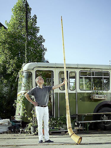 Ich bin ein jüdischer Alphornbläser, und für mich heisst das Instrument auf «Jüdisch» Schofar gadol (grosses Widderhorn). Im Monat Elul, vor Rosch Haschana, dem jüdischen Neujahr, spiele ich wie viele traditionelle Juden jeden Morgen das Schofar, es soll uns aufwecken und in die Stimmung des Neuanfangs bringen. Auch mit dem Alphorn kann ich Emotionen wecken, und da es viel länger ist als das Schofar, kann man Melodien spielen. Mit unserem Alphornquartett spielen wir traditionelle Schweizer Volksmelodien, selber arrangierte und komponierte Stücke, moderne und experimentelle Stücke bis hin zum Jazz. Wir spielen auch jüdische Melodien, dazu brauchen wir Alphörner in verschiedenen Längen. Viel Genugtuung bereitet es mir, wenn es gelingt, Verbindungen zu schaffen: ländlich–urban, alt–modern, schweizerisch–jüdisch, wobei Letzteres ein bisschen provokativ gemeint ist. Mich interessiert immer zuerst der Urtext; in meinem Hauptberuf als Orchestermusiker spielen wir der Epoche und der Herkunft der Musik gemässe Instrumente. Der originale Notentext ist sehr wichtig für eine inspirierte Interpretation. Was mir im Judentum sehr gefällt, ist, dass wir den Text (Tora) schon seit Urzeiten im Urtext lesen und erst danach zu den verschiedenen Auslegungen kommen. Etwas mehr Mut zur Anpassung an eine moderne Welt, zum Beispiel die Gleichstellung der Frau im Judentum, würde ich mir wünschen.
