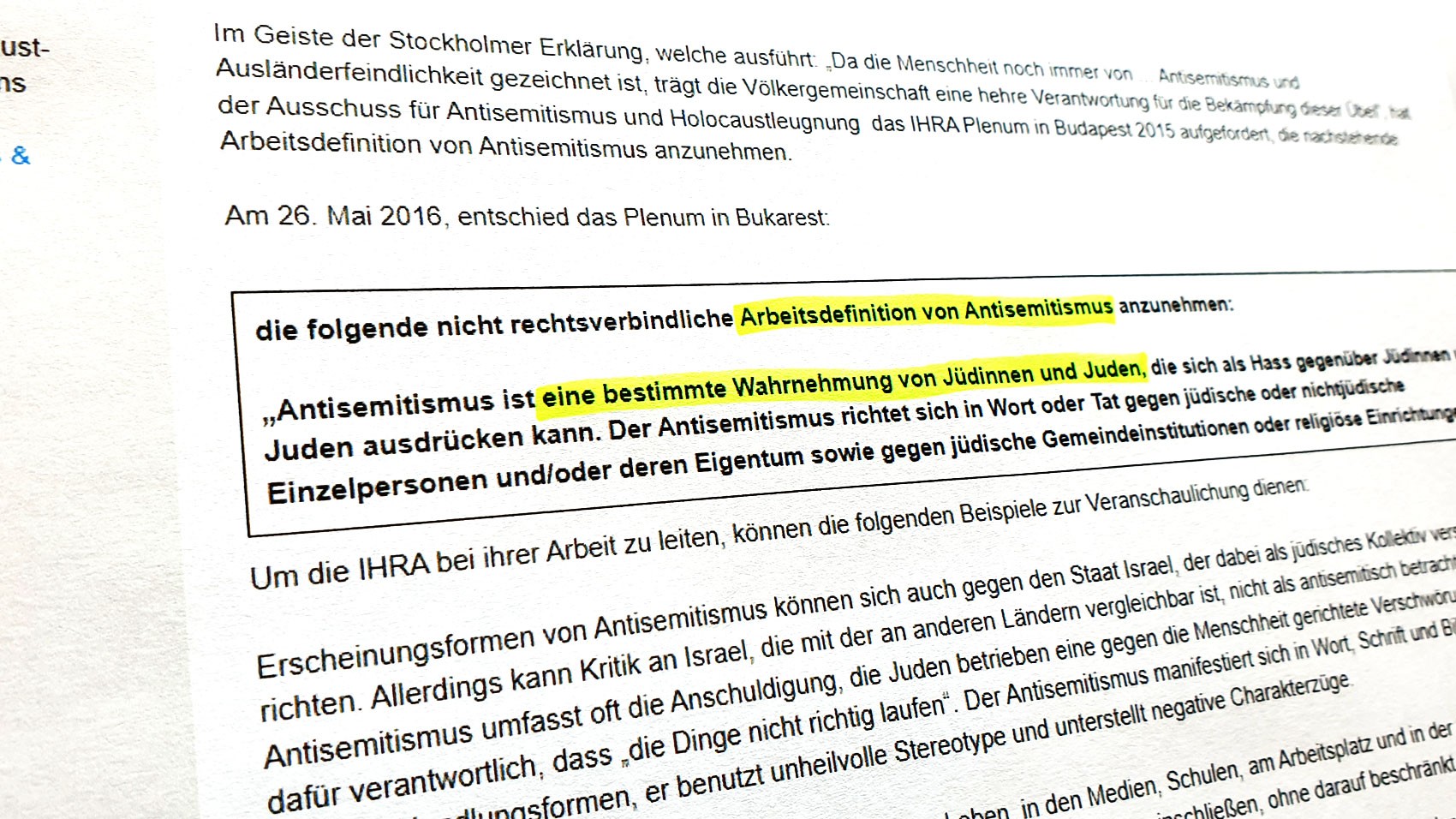Verstoss gegen die IHRA-Antisemitismusdefinition