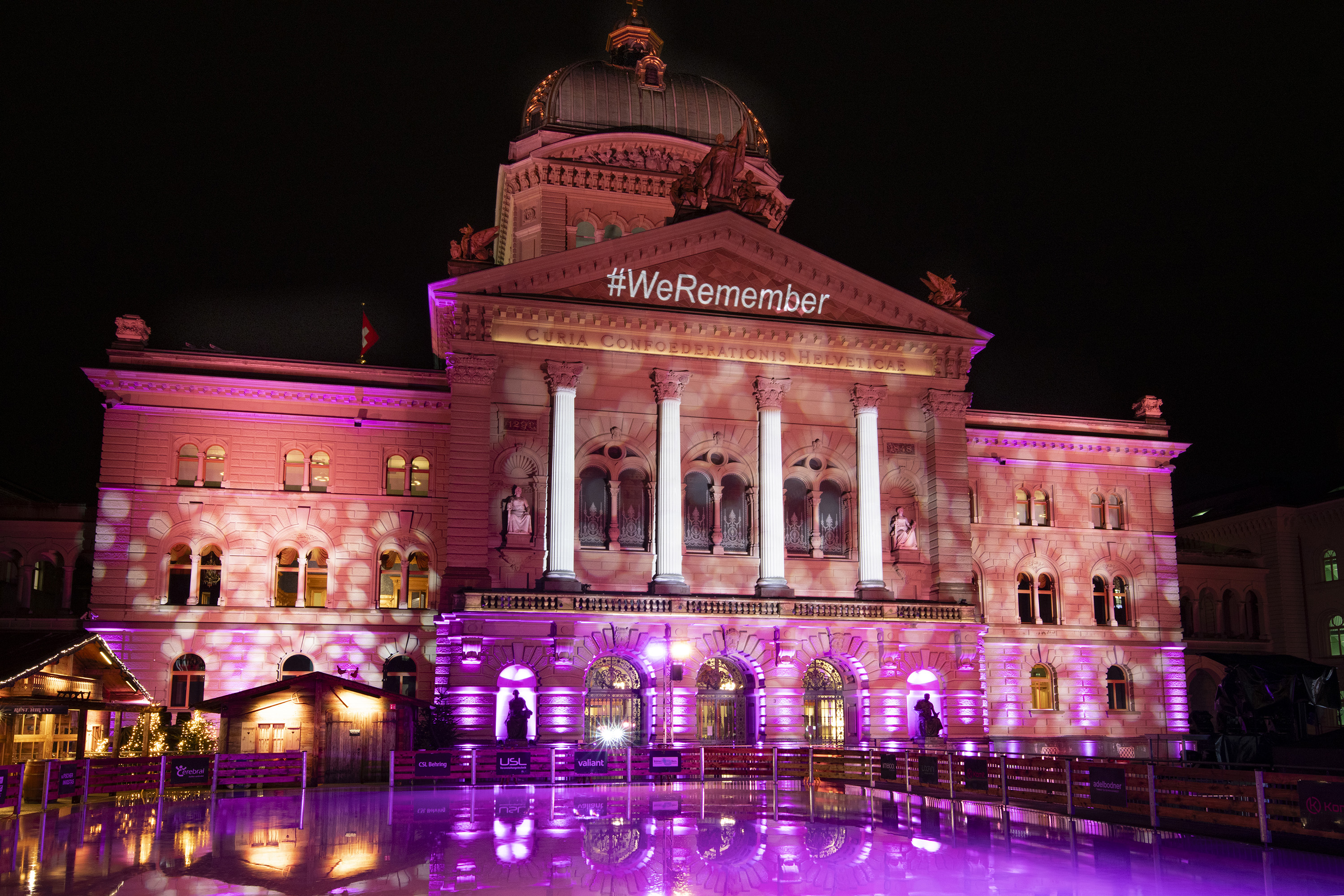 Gestern Abend setzte die Schweiz ein starkes Zeichen für das Erinnern und das Gedenken an die Opfer des Holocaust. Zahlreiche Städte und Gemeinden nahmen an der #WeRemember-Aktion teil und beleuchteten Rathäuser und andere Repräsentationsgebäude. Im Zentrum stand das Bundeshaus in Bern. Nach Einbruch der Dunkelheit erstrahlte es in wechselnden Farben mit dem projizierten Schriftzug #WeRemember.