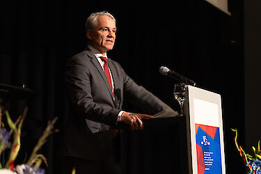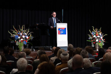 Im Zentrum des Abendprogramms stand der Besuch von Bundesrat Beat Jans, Vorsteher des Eidgenössischen Justiz- und Polizeidepartements. SIG-Präsident Ralph Friedländer würdigte in seiner Rede das Engagement von Jans für die jüdische Gemeinschaft – namentlich bei der Verstärkung der Sicherheitsunterstützung und dem Verbot der Hamas, das in der Woche zuvor in Kraft getreten ist.