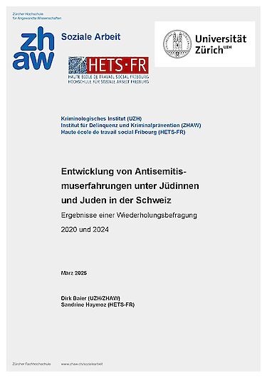 «Entwicklung von Antisemitismuserfahrungen unter Jüdinnen und Juden in der Schweiz: Ergebnisse einer Wiederholungsbefragung 2020 und 2024» der ZHAW